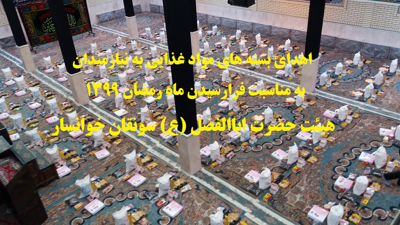 تهیه و توزیع بیش از 110 بسته مواد غذایی ویژه حمایت از نیازمندان شهرستان به مناسبت فرارسیدن ماه مبارک رمضان از طرف حسینیه و مجتمع فرهنگی حضرت اباالفضل سونقان